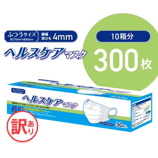 「リブラボ」が「【300枚】 【訳あり *箱潰れ】 ヘルスケアマスク 耳ひも幅4mm ふつうサイズ 30枚入り x 10箱 3層構造 かぜ 花粉 ハウスダスト PM2.5 プリーツタイプ 約4mm hmn マスク」を販売