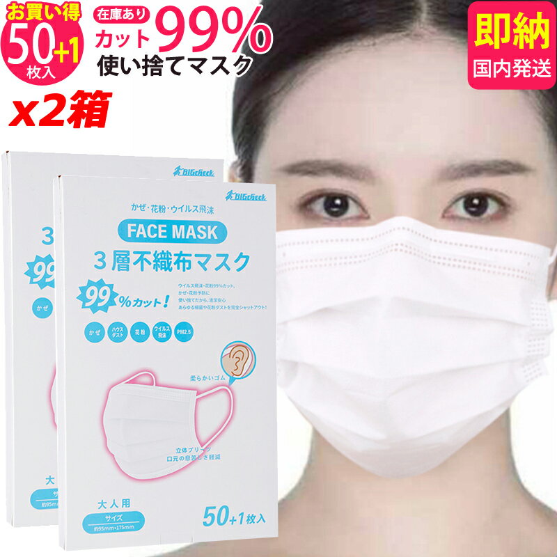 マスク 50枚 +1枚 マスク 在庫あり マスク 3層構造 マスク 使い捨て 風邪.花粉.ウイルス 飛沫対策 在庫あり