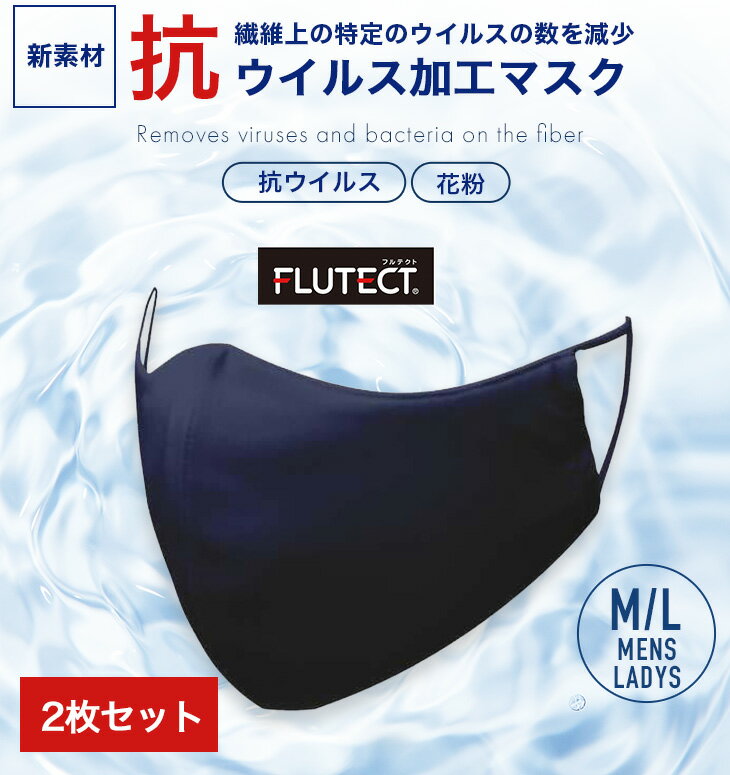抗ウイルス性・抗菌性・洗っても効果が持続!洗濯耐久性 繊維上の特定のウイルスの数を減少させる 抗ウイルス性・抗菌性・洗っても効果が持続!洗濯耐久性 商品名 抗ウイルスマスク(FLUTECT/生地使用) 2枚セット サイズ Mサイズ(レディース推奨):約14×11.5 耳掛け7.5(cm) Lサイズ(メンズ推奨):約14.5×12 耳掛け8(cm) ※縫製・生地の関係上、サイズに個体差が生じる場合がございます。 あらかじめご了承くださいませ。 カラー ホワイト、ブラック、ネイビー、グレー 素材 素材:フルテクト素材(抗ウイルス性・抗菌性・洗濯耐久性)シキボウフルテクト加工生地使用 試験 国際規格ISO2743抗菌性試験合格 国際規格ISO18184抗ウイルス性試験合格 ※マスクは感染(侵入)を完全に防ぐものではありません。 製造販売者 日本ニット工業組合連合会 K-OS 5725 注意 ※ディスプレイの設定によっては、画像イメージと実際の商品に若干色の違いがある場合がございます。 企画 日本企画/ベトナム製