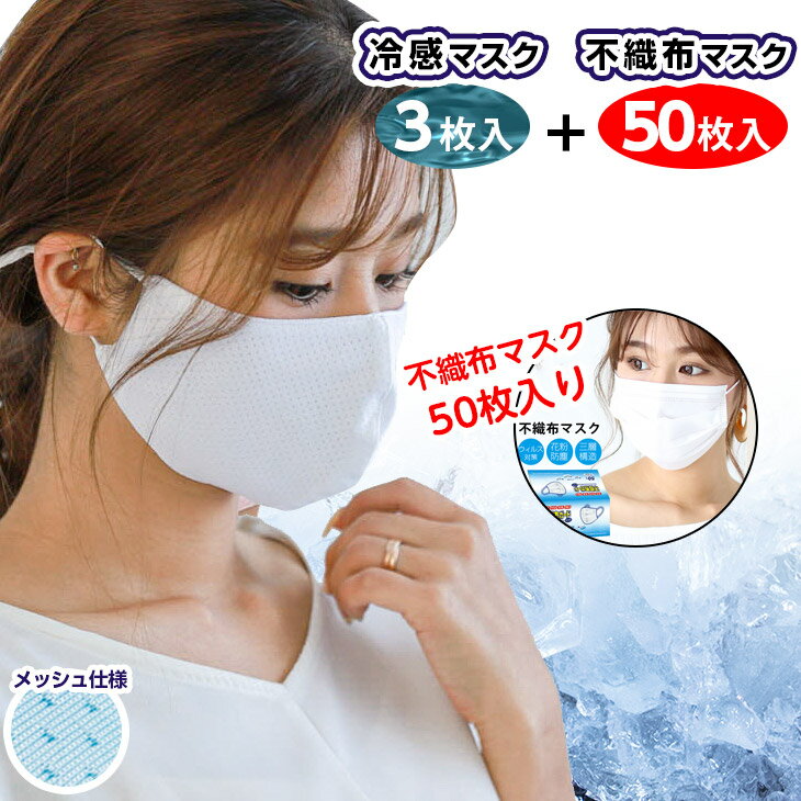 「SUGAR BISKET」が「【今だけ!アイスシルク冷感マスク3枚+50枚不織布マスク】ファッションマスク 夏 ひんやり 涼しい 洗える アイス シルク 夏用マスク 冷感接触 長さ調整 メッシュ 大人【ms-h034】【即納:2-5日】【送料無料】宅込」を販売