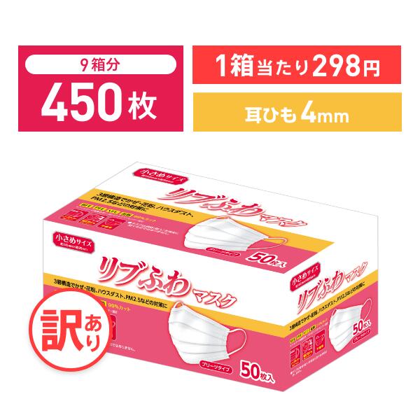 高評価!!「リブラボ」が「【不織布マスク】【訳あり *箱潰れ】リブふわ 耳ひも幅4mm シングルワイヤー マスク 小さめ サイズ 50枚入り 9箱 3層構造 かぜ 花粉 ハウスダスト PM2.5 プリーツタイプ 幅広耳紐約4mm リブふわ lms リブ リブラボラトリーズ【450枚】」を販売
