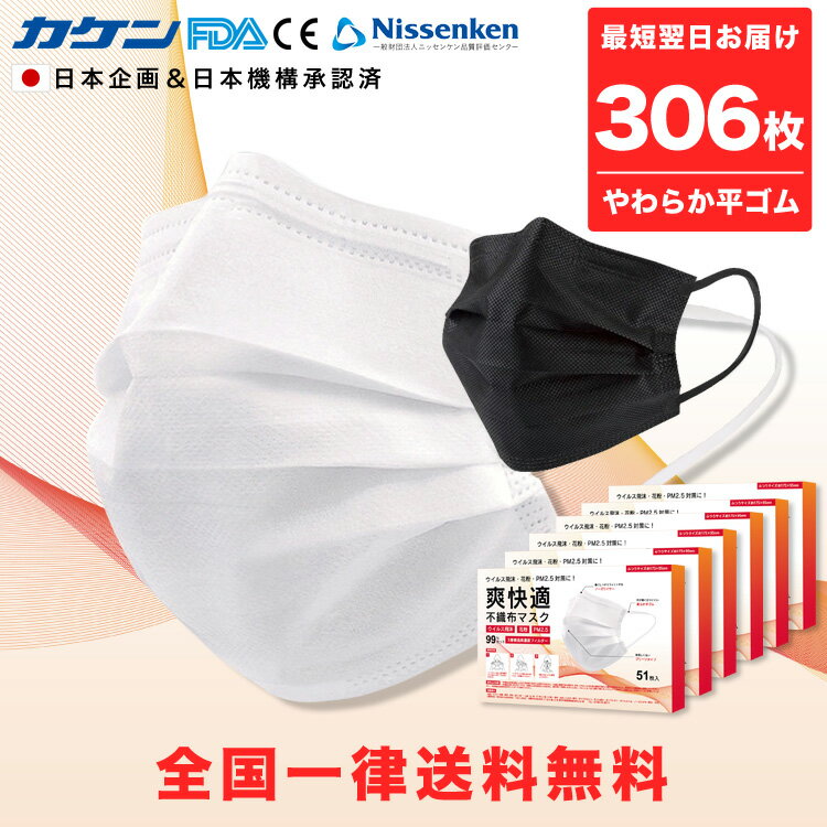 メーカー希望小売価格はメーカーサイトに基づいて掲載しています 【 必読 】 ご注文に関する注意事項 >> 納期・梱包について 規定の納期で発送いたします ※あす楽対応地域のみ対象 【お届けまでの納期】 発送日から1〜4営業日以内にお届け ※お届け先が遠方の場合、離島など一部地域はさらに数日要する場合があります。 ※悪天候や自然災害、交通状況により遅延する場合がございます。 ※前入金のお支払いの場合、ご入金日から規定納期にお届けいたします。 【梱包について】 環境に配慮し、簡易包装で発送させていただきますので、輸送時の箱潰れなどが発生する場合がございます。 マスク人気シリーズ!!商品名 爽快適不織布マスク 6箱 300枚 + 6枚 サイズ 約95mm×約175mm(大人用ふつうサイズ) ※商品によっては、サイズが多少前後する場合がございます。 数量 6箱 300枚 + 6枚 素材 本体:ポリプロピレン不織布、 耳ゴム:ポリウレタン・ポリエステル、 ノーズワイヤー:PVC 品質 新型コロナ対策に取り組んでいる中国では、マスクの生産許 可に対して国の証明書が必要です。当店の製品は許可を取得 しておりますのでご安心下さい。ご購入の際は未許可マスク のご購入にご注意下さい。 生産国 Made in China お届けについて ●●●●●●配送・送料について●●●●●● ・日時指定はお受けできません。 ・ご注文受付後の住所変更はお受けできません。ご注文前に必ずご確認をお願いいたします。 ・送料無料でお届けいたします。 ●●●●●●商品のご注文について●●●●●● ・商品発送後のキャンセルはお受けできません。 ・当サイトでは、複数店舗で在庫を共有しており、システムによる在庫調整を行っております。 ご注文が集中した場合、タイミングにより在庫にずれが生じ欠品となる可能性がございます。 その際、当店での注文確認後にご案内させていただく場合がございますこと、予めご了承ください。 ●●●●●●納期・梱包について●●●●●● 規定の納期で発送いたします ※あす楽対応地域のみ対象 【お届けまでの納期】 発送日から1〜4営業日以内にお届け ※お届け先が遠方の場合、離島など一部地域はさらに数日要する場合があります ※悪天候や自然災害、交通状況により遅延する場合がございます。 ※前入金のお支払いの場合、ご入金日から規定納期にお届けいたします。 【梱包について】 環境に配慮し、簡易包装で発送させていただきますので、輸送時の箱潰れなどが発生する場合がございます。 【予約商品との同時注文ついて】 予約商品と即納の同時注文の場合は、予約商品の発送予定日に合わせて発送になります。 ●●●●●●納品書・領収書について●●●●●● 【納品書について】 納品書/明細書の同封をいたしておりません。 (当店ではお客様の個人情報保護の観点および、環境に配慮し用紙の利用を最小限に抑える為) 必要の際は、ご購入時の『備考欄』に「納品書希望」「明細書希望」とご記入いただけましたら、メールにてPDFデータをお送りいたします。 【領収書の発行について】 領収書の発行はしておりません。 クレジットカード決済の場合→カード会社様のご利用明細書を領収とさせていただいております。 但し、楽天の規定により、銀行お振込いただいた場合のみ、メールにて送付させていただいております。 ご理解いただけますと幸いです。