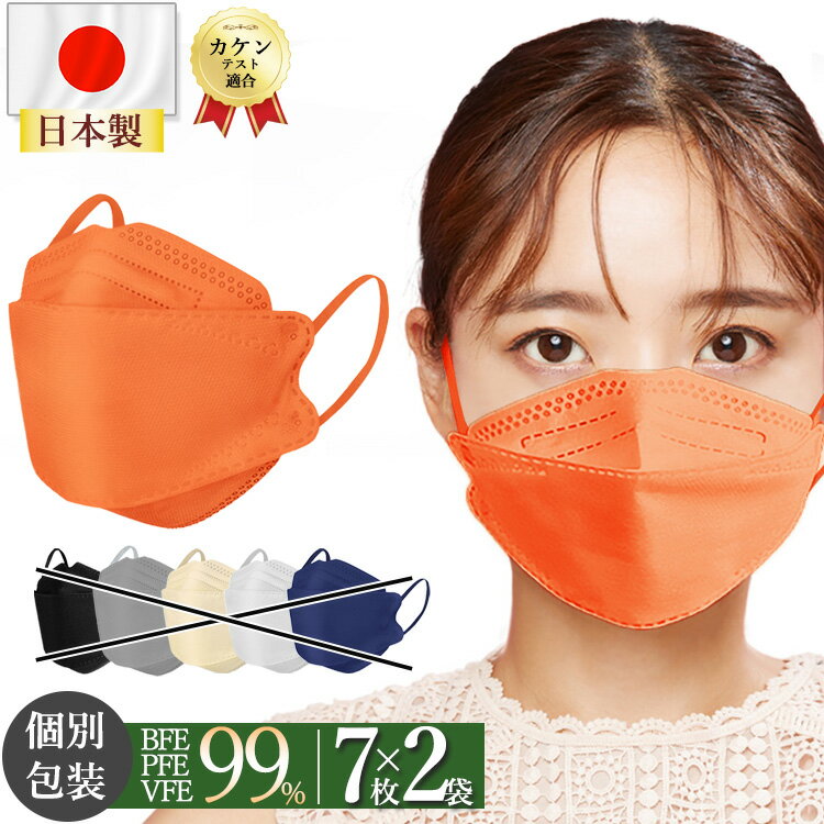 「エバラボ8」が「【選べる2色】【2パック】【日本製】マスク 不織布 KF94型 日本製 四層構造 3D立体 個別包装 普通サイズ ウイルス飛沫 かぜ 花粉 PM2.5 ほこり 防止インフルエンザ予防 対策 立体構造 柳葉型 おしゃれ 口紅がつきにくい 大人用 男女兼用 5色 カラー 7枚×2袋セット 14枚」を販売