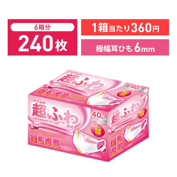 「リブラボ」が「【240枚分】リブふわ超ふわマスク 小さめ 40枚入 6箱 リブふわ マスク リブラボラトリーズ 【 耳ひも幅6mm 不織布マスク 強力ノーズワイヤー 3層構造 かぜ 花粉 ハウスダスト PM2.5 メガネが曇りにくい 個包装 個別包装 リブふわマスク 芯金 口元やわらか不織布】」を販売
