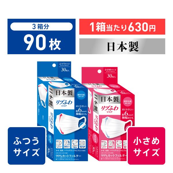 「リブラボ」が「【90枚分】日本製リブふわマスク 耳ひも幅6mm 個包装 30枚 x3箱 ( ふつう or 小さめ ) 【 日本製 マスク 不織布マスク オメガ構造 シングルワイヤー 3層構造 かぜ 花粉 ハウスダスト PM2.5 リブふわ リブ リブラボ リブラボラトリーズ 】」を販売