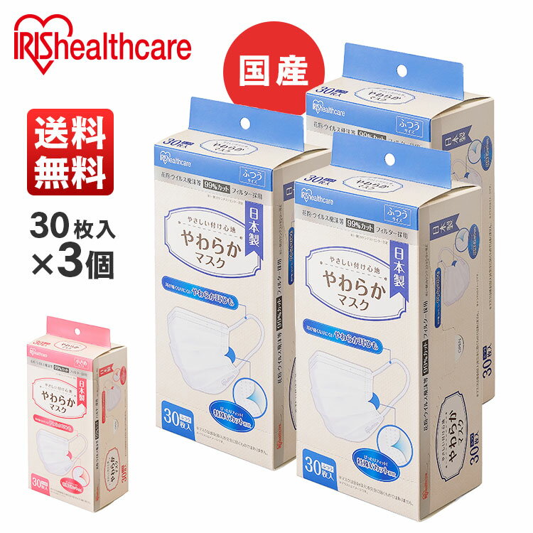 マスク 不織布 日本製 やわらかマスク アイリスオーヤマ ふつう 小さめ 30枚入×3箱セット 不織布マスク 90枚 30枚×3個セット 普通 サイズ 使い捨て やわらか耳ひも