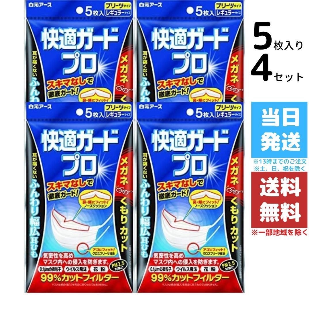 白元アース マスク 快適ガードプロ プリーツタイプ レギュラーサイズ 5枚入 4個セット