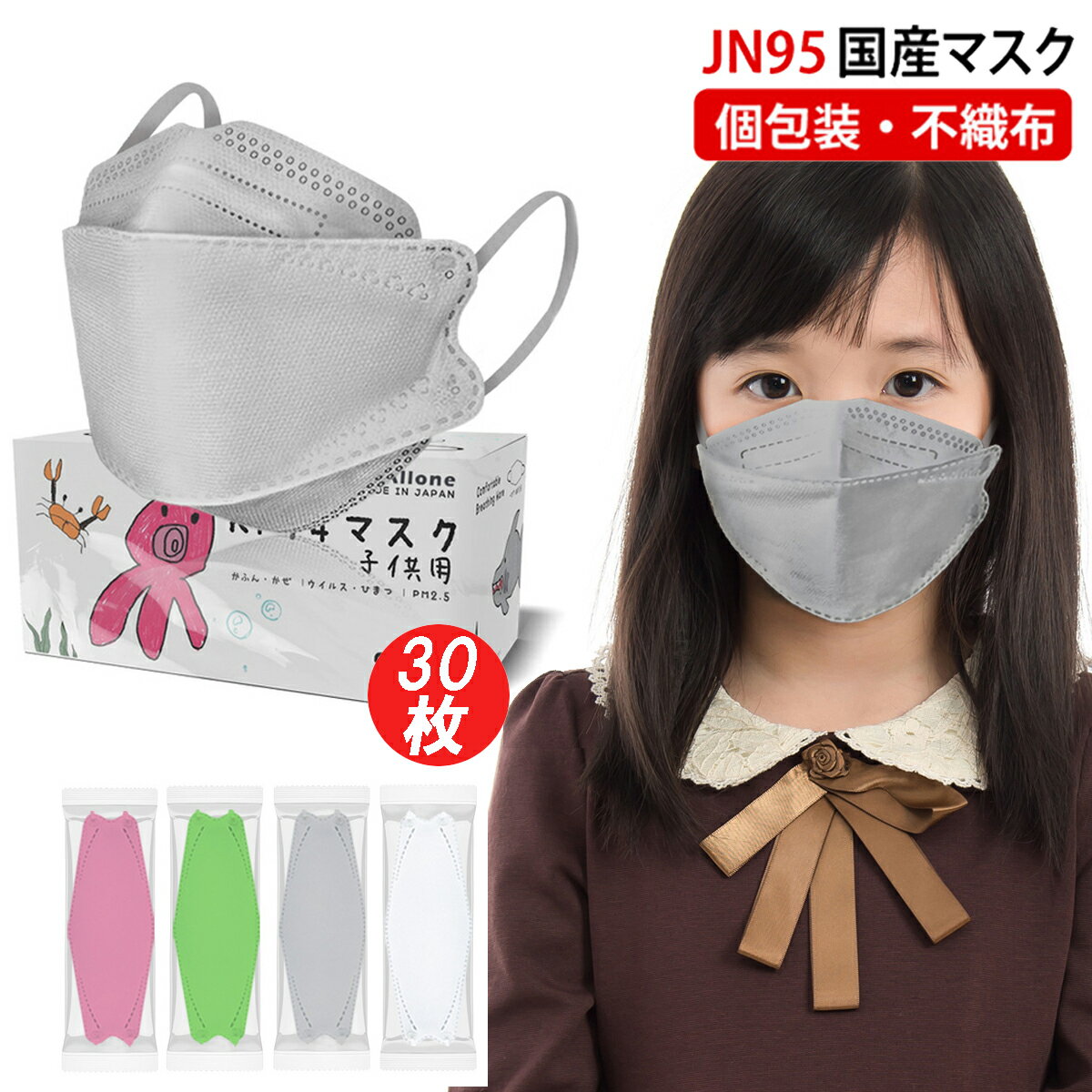 「浴衣 七五三 安売り天国とせん」が「マスク jn95 不織布 日本製 子供用 30枚 kf94型マスク 柳葉型 3d 立体 4層構造 使い捨て カラーマスク 子供サイズ 小さめ キッズ 国産マスク 呼吸がしやすい 高性能 くちばし 韓国型 医療用クラス性能 国産 カケンテスト 済 個別包装」を販売