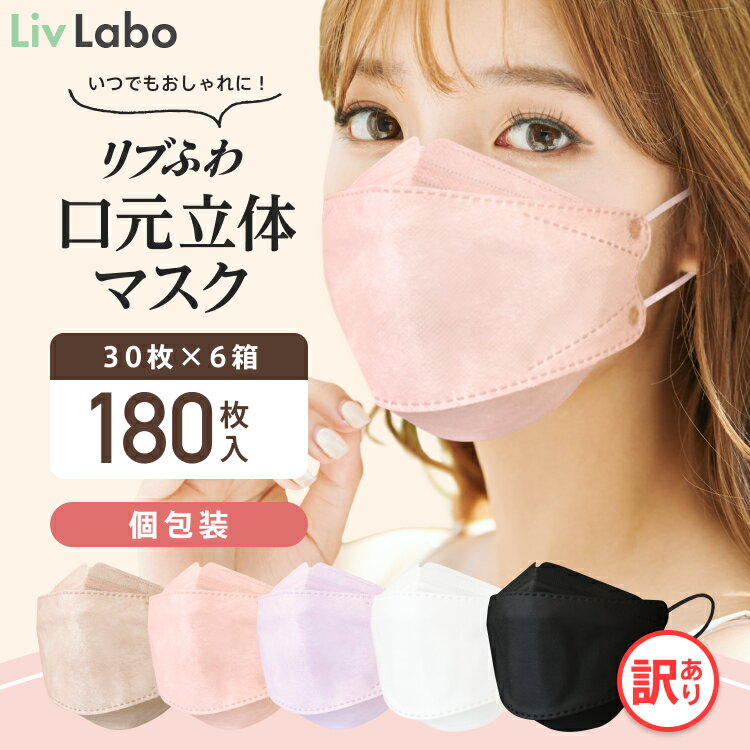 「リブラボ」が「【楽天スーパーSALE期間ポイント10倍】全5色 リブふわ口元立体マスク 訳あり *箱潰れ 6箱 180枚セット ( ホワイト / ベビーピンク /ラベンダーグレー /グレージュ / ブラック )個包装 約5mm耳紐 立体 不織布 マスク 血色マスク カラーマスク 訳あり」を販売