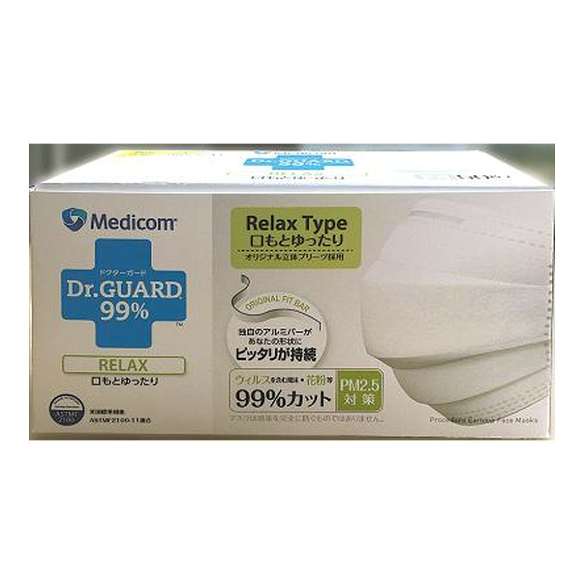メディコム ドクターガード マスク リラックス 普通サイズ ホワイト 50枚入 内側にメッシュの折り返し加工が施されており、眼鏡が曇りにくい仕上がり(使い捨て不織布マスク)