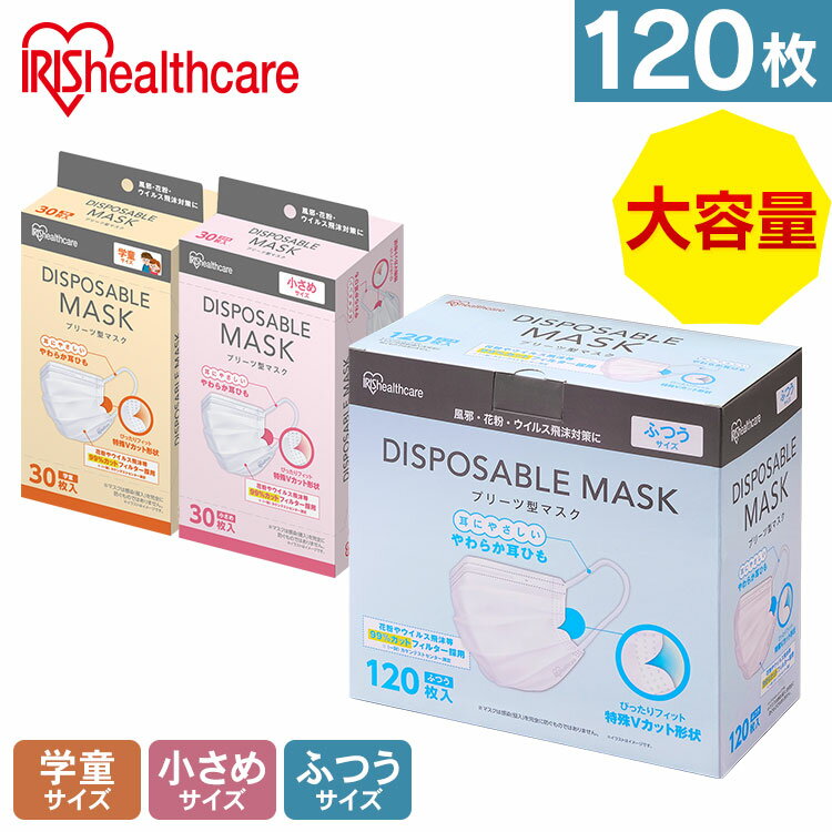ディスポーザブルプリーツマスク ふつうサイズ 120枚入 プリーツ型 風邪 ウイルス インフル 飛沫感染 咳 鼻水 花粉 ディスポーザブル ぷりーつますく ふつうさいず アイリスオーヤマ