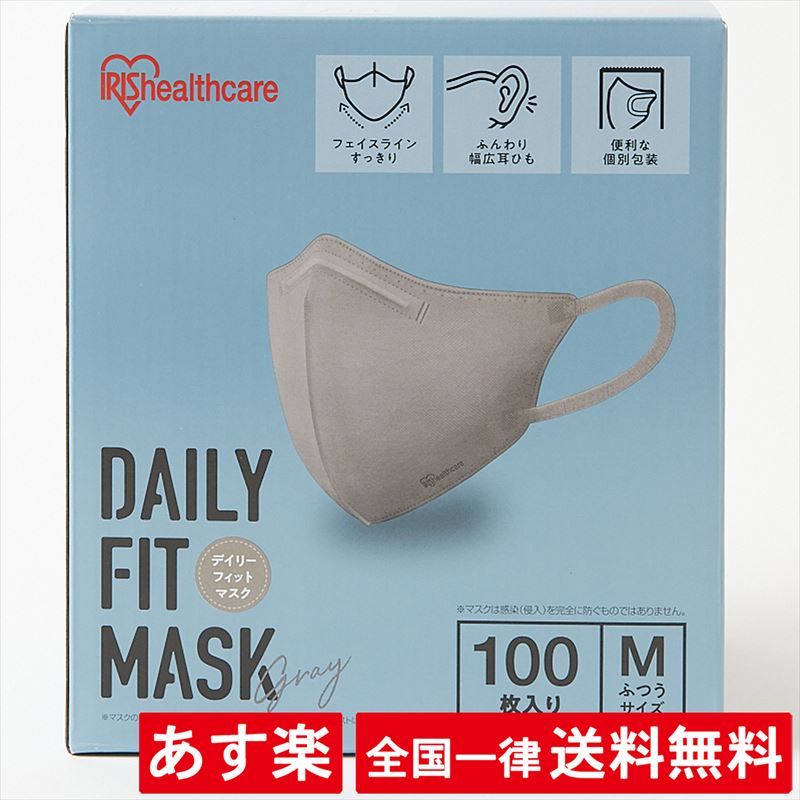 「abマート 楽天市場店」が「【グレー】【Mサイズ】不識布 立体 カラー マスク【100枚入り】IRIS HEALTHCARE 個包装 アイリスオーヤマ デイリーフィットマスク 特殊立体形状 ふんわりやさしい幅広耳ひも カラーマスク 血色マスク 大人用 使い捨てマスク 立体マスク 血色カラー【あす楽】【送料無料】」を販売