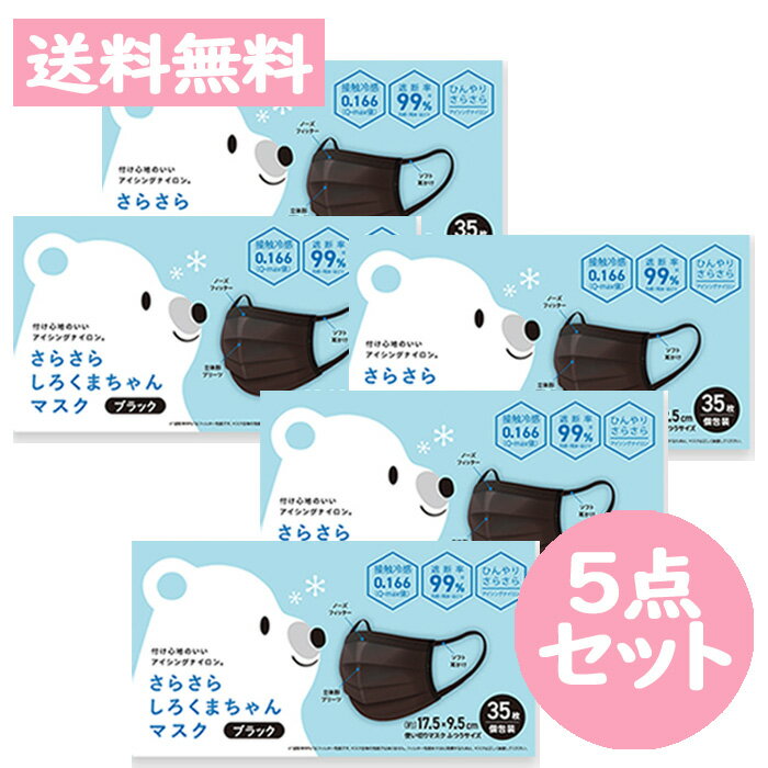 「なの花北海道ドラッグ 楽天市場店」が「[宅配便]さらさら しろくまちゃんマスク 35枚入 普通サイズ ブラック 5点セット 使い捨てマスク 不織布【3R】冷感接触マスク 敏感肌」を販売