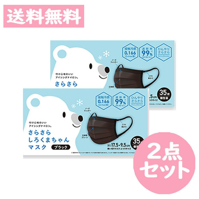 「なの花北海道ドラッグ 楽天市場店」が「[宅配便]さらさら しろくまちゃんマスク 35枚入 普通サイズ ブラック 2点セット 使い捨てマスク 不織布【3R】冷感接触マスク 敏感肌」を販売