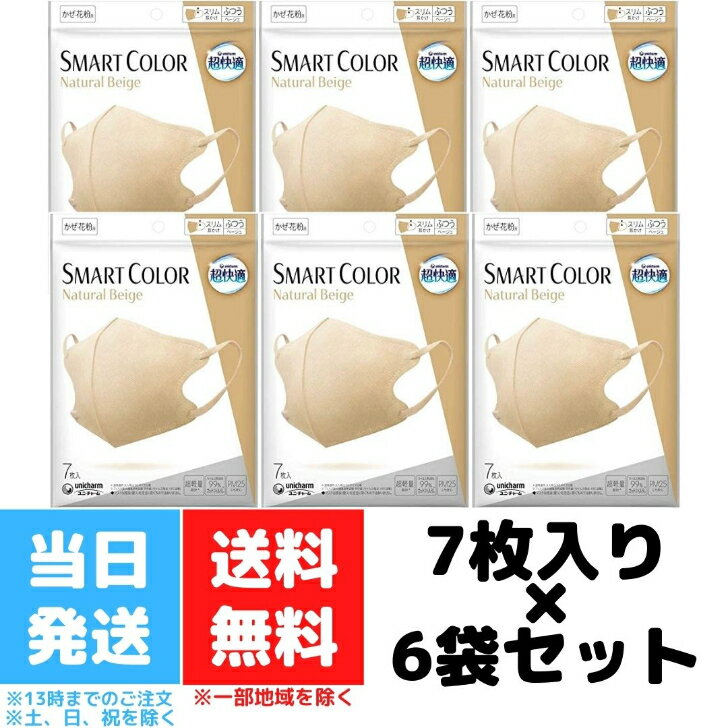 超快適マスク スマートカラー ナチュラルベージュ ふつう 7枚 6個セット ユニ・チャーム SMART COLOR Natural Beige 送料無料