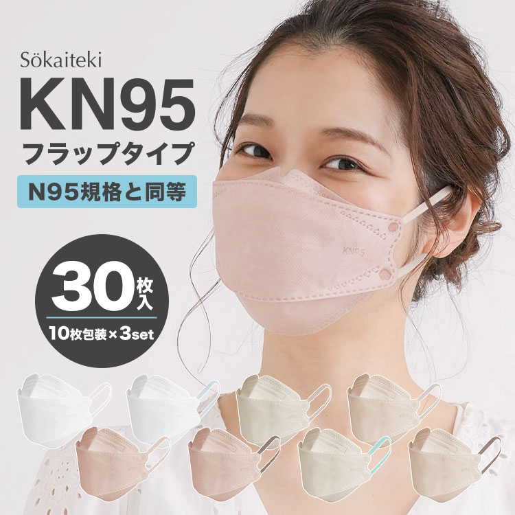「MONO KOTO DEPT.」が「米国 N95 同等 KN95マスク フラップタイプ 30枚 1箱 KN95 4層 不織布 カラー 日本企画 平ゴム 不織布マスク 耳が痛くならない 使い捨て 爽快適」を販売