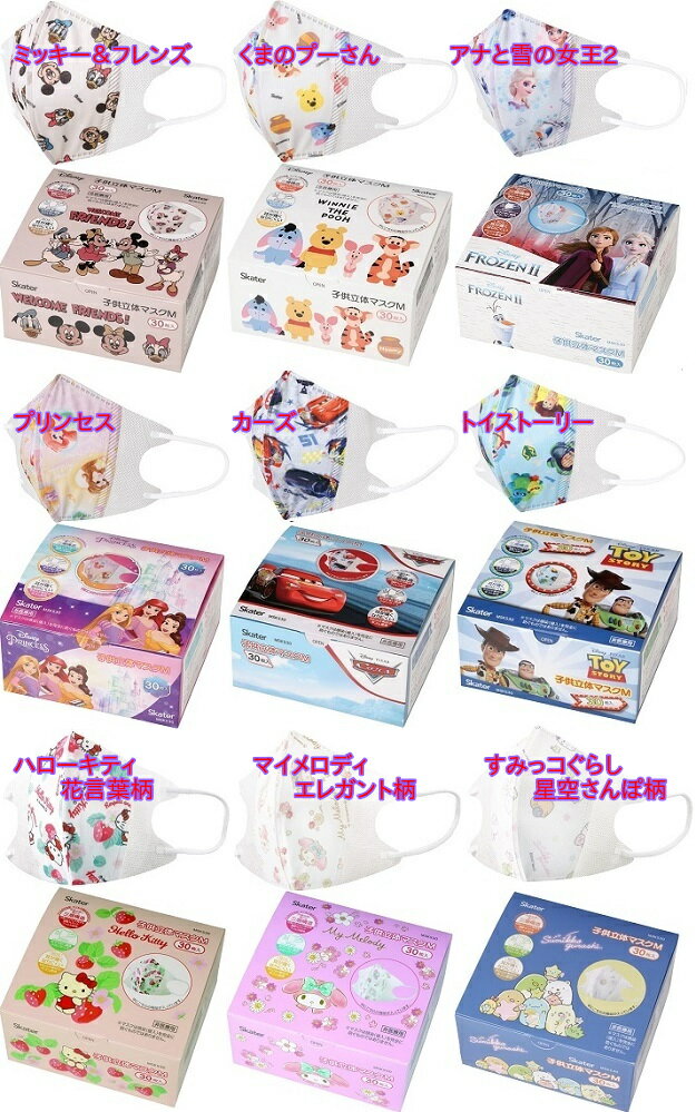 ★楽しいキャラクターの絵柄入りのマスクです ★高性能の不織布マスクなのでウィルス・花粉・ ほこりなどを99%カットします。 ★立体なので口元の空間で息が楽な構造です。 ★製品サイズ/約10cm×12cm(2つ折り時) ★1包あたりの入数/30枚 ★材質/ポリプロピレン、その他 ★対象年齢/4歳〜 ★製造国/中国 ★製造元/スケーター株式会社 (全国マスク工業会会員) ★マスクのサイズが合わない場合には 使用を中止してください。 ★赤み、はれ、かぶれなどの症状が見られたり、 刺激を感じた場合や 臭いなどで気分が悪くなった場合、 息苦しくなった場合には使用を中止してください。 特に幼児への使用時にはご留意願います。 カット率は使用状況により 大きく変化する場合もございます。 こどもマスク 不織布マスク すしょくふますく 不織布ますく フショクフマスク 使い捨てマスク 子供マスク 子供用マスク 子供用使い捨てマスク キャラクターマスク 4973307584862ミッキー&フレンズ 4973307584879くまのプーさん 4973307584886アナと雪の女王2 4973307584923プリンセス 4973307584893カーズ 4973307584916トイストーリー 4973307505843ハローキティ花言葉 4973307505805マイメロディエレガント 4973307505812すみっコぐらし星空さんぽ