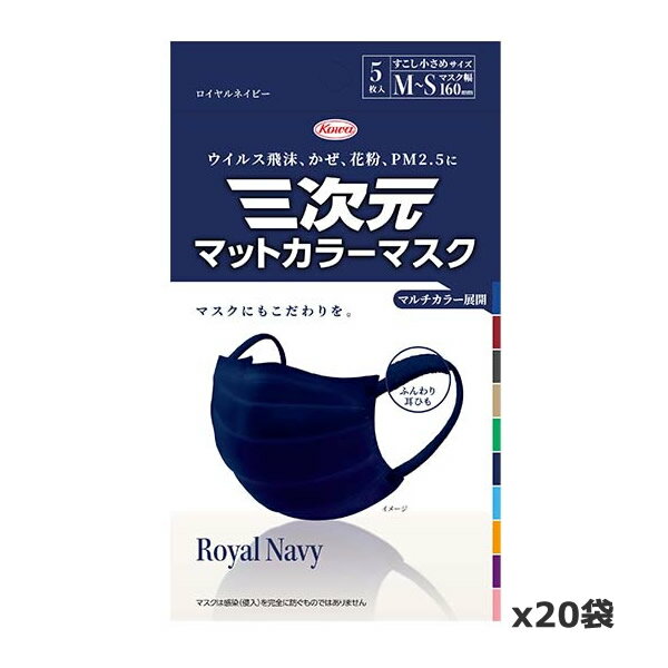 「健康エクスプレス」が「三次元マットカラーマスク 少し小さめMSサイズ ロイヤルネイビー 5枚入り x20個」を販売