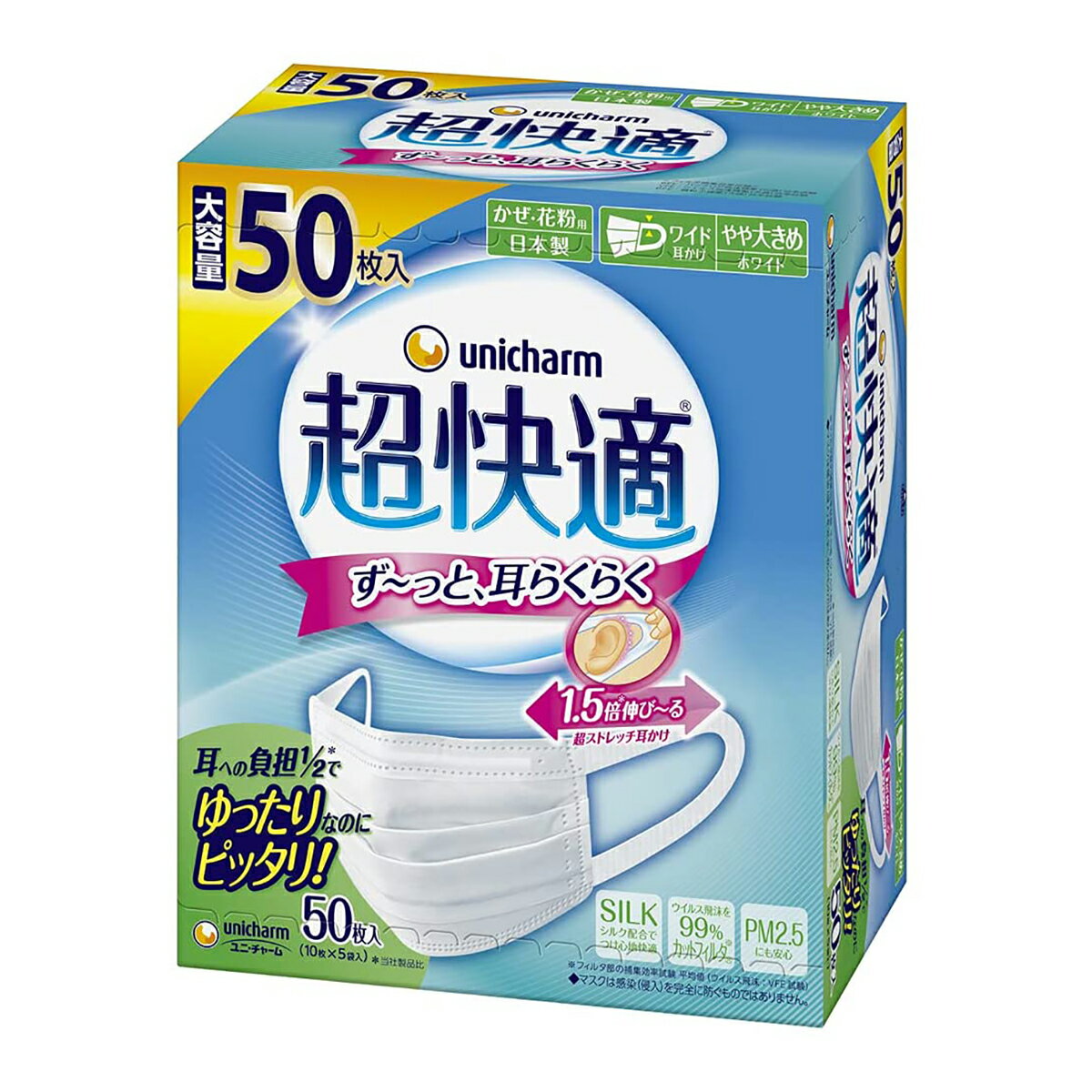 ユニチャーム 超快適マスク プリーツタイプ やわらかストレッチ耳かけで、ず〜っと、耳らくらく!更に、本物シルク配合で、つけ心地なめらか (新型ウイルス マスク)