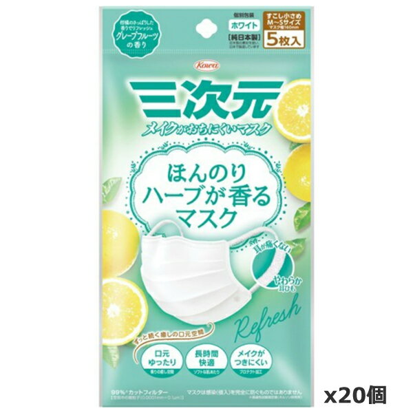 興和 三次元マスク ほんのりハーブが香るマスク グレープフルーツの香り ホワイト 少し小さめ MSサイズ 5枚入り