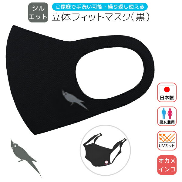 「EXCEEDJAPAN」が「【ことりカフェ心斎橋】立体フィットマスク《黒》 シルエット ★オカメインコ 1枚 ◆ゆうパケット対応◆ ことり 小鳥 衛生用品 エチケット用品 マスク 衛生マスク 立体マスク 日本製 男女兼用 ユニセックス ことりカフェ心斎橋 ブラック BK」を販売