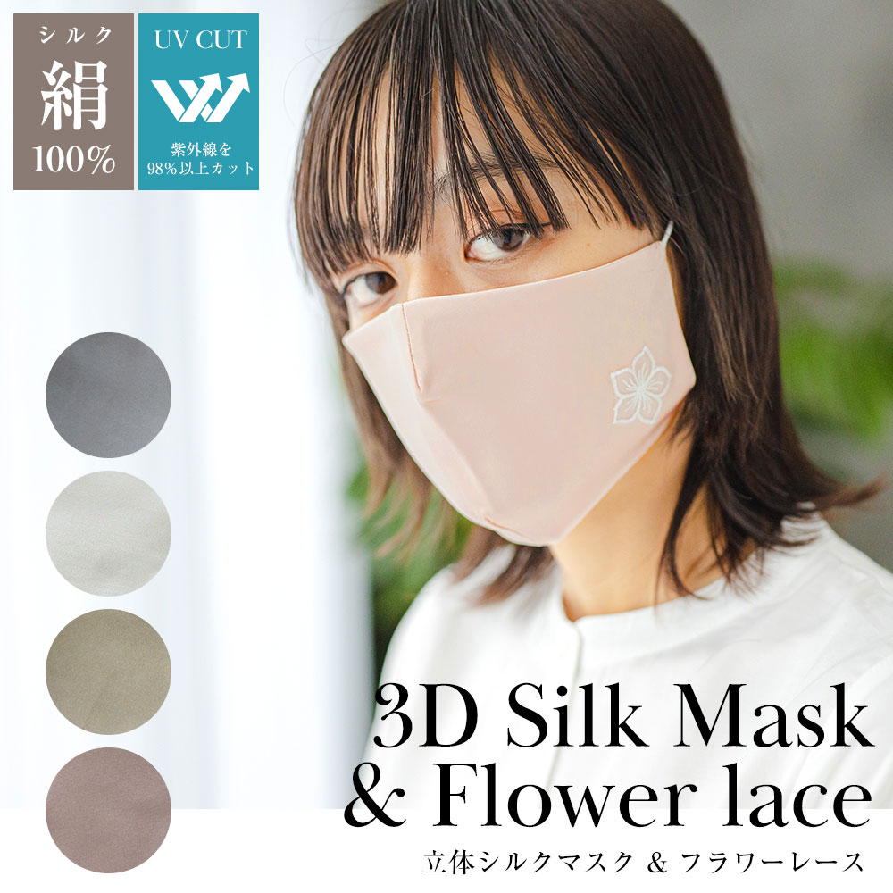 【メール便送料無料】立体シルクマスク フラワーレース UV遮蔽率98% サイズ調整機能付き 手洗い可能 マスク