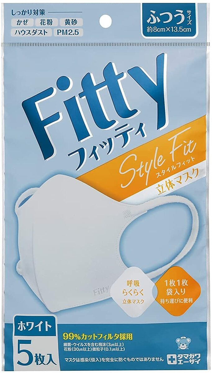 商品情報商品説明ブランド:フィッティ●感染対策とファッションを兼ね備えた不織布の立体形状のマスク。●マスク本体と同系色の耳ゴムで一体感のあるデザイン。●口元があたらず呼吸・会話がしやすい立体形状。●耳にやさしい幅広ふわふわゴムで耳が痛くなりにくい。●持ち運びに便利な1枚1枚袋入り。●99%カットフィルタ採用で花粉やウイルス飛沫などをしっかりとブロック。【メール便送料無料×3個セット】玉川衛材 フィッティ スタイルフィット ホワイト ふつうサイズ(5枚入)【3個】スタイルフィット フィッティ マスク 個包装 マスク フィッティ スタイルフィットお得な3個セット! 2