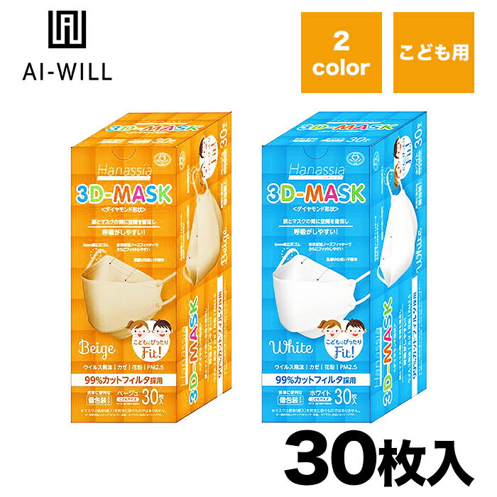 「PET THREE」が「【スーパーSALE限定 10%OFF】【AI-WILL】ハナッシア 3D-mask こども用 30枚入り マスク 飛沫対策 花粉対策 無地 立体 個包装 使い捨て 予防 衛生的 持ち運び 耳痛くない」を販売