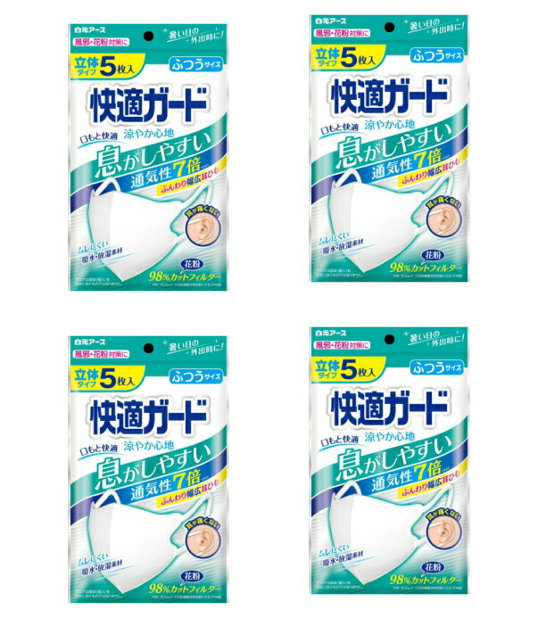「姫路流通センター」が「【送料込・まとめ買い×4】白元アース 快適ガード 涼やか心地 5枚入 ×4点セット ふつうサイズ 立体タイプ マスク(4902407581273)※無くなり次第終了」を販売
