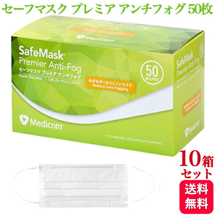 「くらし応援本舗 楽天市場店」が「【10箱セット】メディコム セーフマスク プレミア アンチフォグ ホワイト 50枚入 医療用 サージカル」を販売