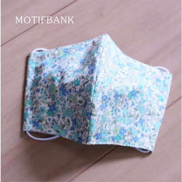 「キッズITEMとモチーフ MOTIFBANK」が「【L】 立体マスク 大人用サイズ 裏:Wガーゼ 表:ライトグリーン小花(綿100%)」を販売