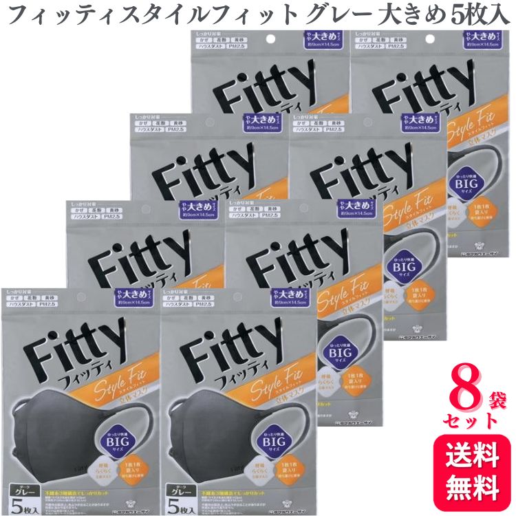 fitty 耳が痛くなりにくい スタイルフィット 持ち運ぶ便利 BIGサイズ 大きめサイズ グレー 個包装 玉川衛材 タマガワエーザイ 耳ふわ PM2.5 花粉 風邪 対応 送料無料