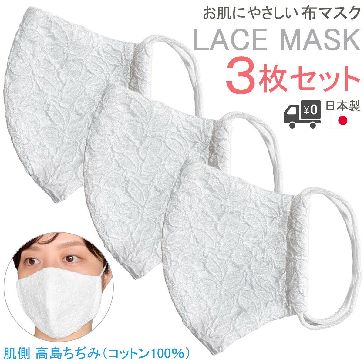 3枚セット♪ 人気No,1! 総レースの上品な立体的に仕上げた日本製・布マスクです。洗って繰り返し使用いただけます。ウエディングにもOK!肌側天然素材でお肌にも優しい◎