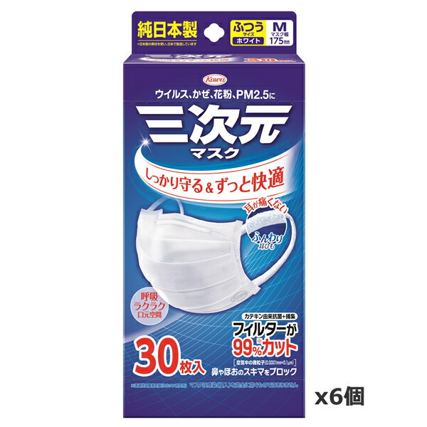 使用方法 1.「内側inside」の文字が書かれている面が顔側です。 2.ブリーツの折り目を縦に伸ばしてマスクを広げます。 3.マスク上部のノーズフィッターを鼻の形に合わせて曲げて下さい。 *メガネがくもりにくくなります。 使用上の注意 ・乳幼児呼吸器に異常がある方は使用しないでください。 ・マスクのにおいで気分が悪くなったり、息苦しさを感じた場合は、使用を中止して下さい。 ・肌に異常がある方は、使用しないでください。 ・かゆみ・かぶれ等が生じた場合は直ちに使用を中止し、医師に相談してください。 ・火気のそばで使用しないでください。 ・使用する分だけ袋からマスクを取り出してください。 ・衛星面から一度使用したマスクは袋に戻さないでっください。 ・本品は有毒ガス、有害粉塵に対して効果はありません。 ・本院は使い切りタイプですので洗って再使用はできません。衛生面から1日1枚の使用をおすすめしますが、汚れが気になる場合は取り替えてください。 ・マスク上部にノーズフィッターがついていますので、取扱いに注意してください。 ・環境や個人差などにより、眼鏡がくもることがありますので、運転の際などは十分に注意してください。 ・乳幼児の手の届かない所に保管して下さい。 ・高温多湿な場所での保管は避けてください。 商品区分 衛生用品 原産国 日本 製造元 興和株式会社 お客様窓口:03-3279-7560(土日祝日を除く 9:00-17:00) 検索用文言 興和 三次元マスク ふつうサイズ 30枚入り 広告文責 株式会社ケンコーエクスプレス TEL:03-6411-5513ウイルス。かぜ、花粉、PM2.5に! ●日本製 ●しっかり守る ・補修フィルターが99%カット ・天然カテキン由来の抗菌フィルター内蔵 ・鼻やほおのスキマをブロック ●ずっと快適 ・つけ心地の良いふんわり耳ひもを採用 ・肌ざわりやわらか高品質不織布 ・口もとゆったり ・メガネのくもりもブロック